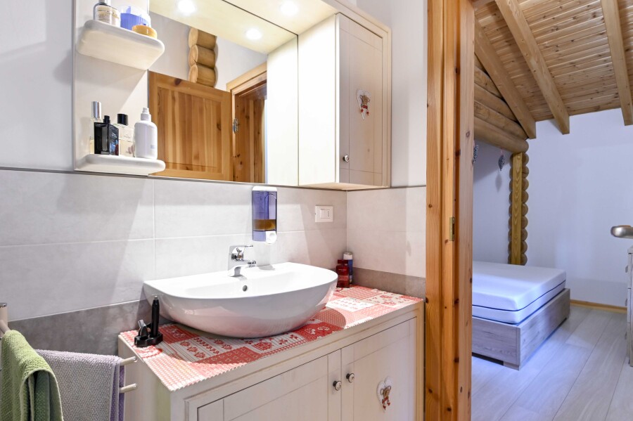 Lo chalet è composto in tutto da sole 4 unità abitative, quella disponibile si trova al primo ed ultimo piano e si raggiunge grazie ad un ingresso indipendente.