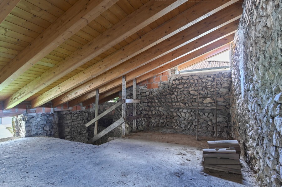 Il sottotetto, reso sicuro dalle travi recentemente rifatte, rappresenta uno spazio ulteriore da valorizzare secondo le proprie esigenze, che si tratti di una mansarda abitabile, di un locale hobby o di un’area di servizio.