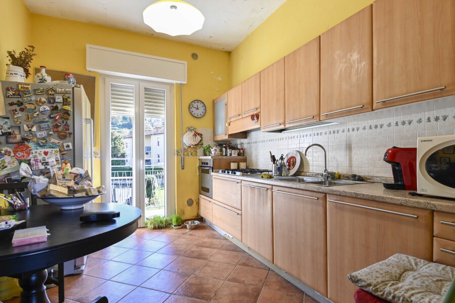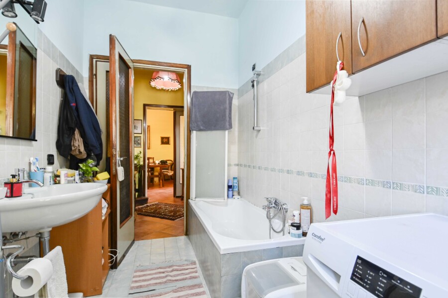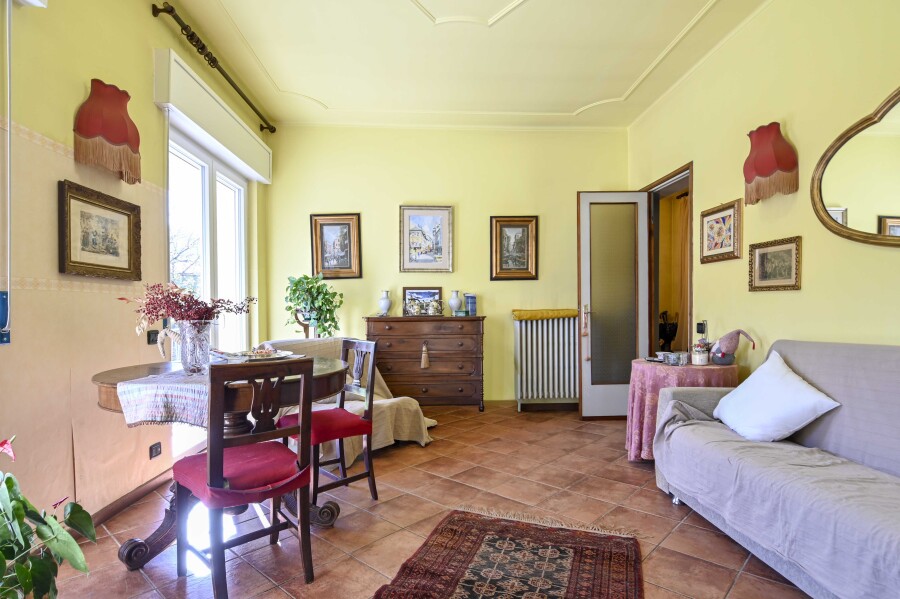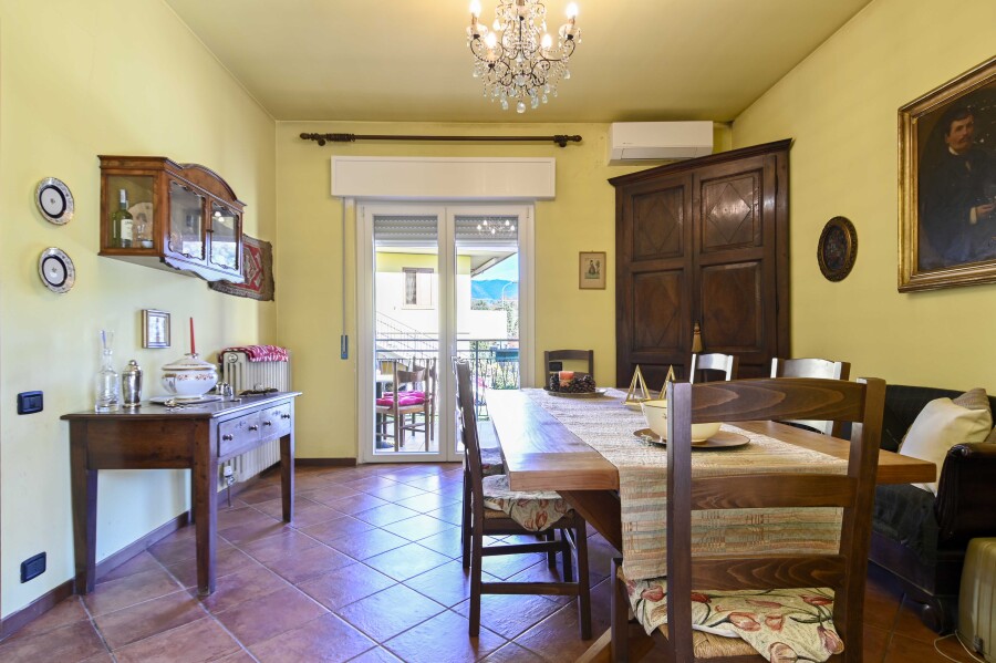 L’abitazione è composta da cucina separata e ampio soggiorno, attualmente ulteriormente ingrandito grazie all’incorporazione della terza camera, che può essere facilmente ripristinata con un semplice tavolato. La zona notte ospita due camere, un bagno e un comodo ripostiglio. Quattro terrazzi servono gli ambienti principali, offrendo luminosità e piacevoli spazi esterni da vivere in ogni stagione.